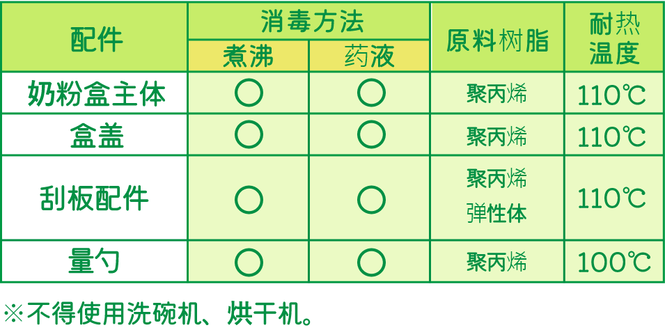 - 使用时,请保持专用奶粉盒和专用量勺的清洁。