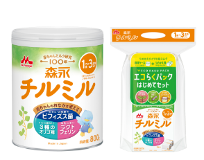 「チルミル」は離乳食が食生活の中心になるお子さまの栄養をバランスよく補うことのできるフォローアップミルクです。特に離乳期に不足しがちな鉄、カルシウムなどがバランスよく含まれていますので、1 歳からは「チルミル」をおすすめします。(9 か月以降で離乳食が 3 回食になっているようでしたら、「チルミル」をお使いいただけます。)。「チルミル」は離乳食の材料としてもお使いいただけますので、当サイトに掲載しているレシピもぜひご覧ください。